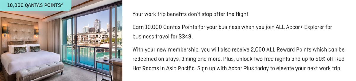 Sign up for an ALL Accor+ Business Explorer membership ($349/year) by 31 Mar 2026 and you’ll earn 10,000 Qantas points plus 2,000 ALL Reward points.