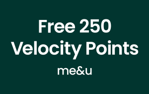 From 12.00pm AEDT on 24 November 2025 (unless extended, varied or removed by me&u or Velocity), Velocity Members will earn 100 bonus Velocity Points after successfully linking their Velocity account with their me&u account. Velocity Terms and Conditions and exclusions apply.