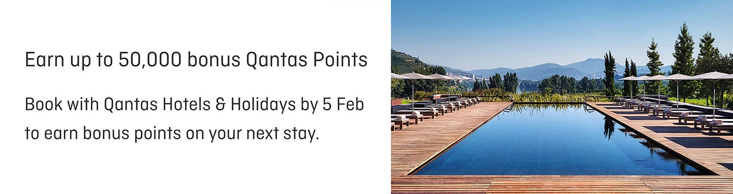 Receive up to 50,000 bonus Qantas points on top of the standard 3x points per dollar spent when you book through Qantas Hotels or Qantas Holidays between 15 Jan and 5 Feb 2026.